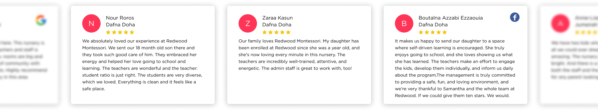 Redwood Montessori Nursery, Al Dafna, is ideally situated in the sought-after Westbay Lagoon/Legtaifiya area of Doha, offering seamless access to both Lusail and The Pearl.
