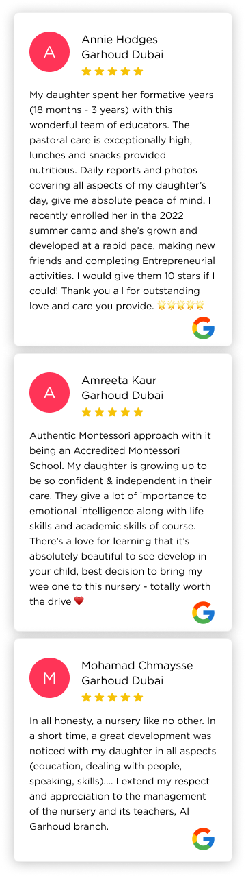 Redwood in Garhoud has been awarded with the STAR (Standards and Training Accreditation Review) certificate from Montessori Global Education. This recognition reflects Redwood’s unwavering dedication to providing exceptional Montessori and Montessori-inspired education.